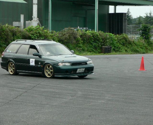 午後の前半は2速を使う高速ターンの設定(大外回り⇒ブレーキングドリフト⇒半径10m&14mの大きな8の字⇒最後に360度ターン)でした。こちらの方が余りスピンしないのでレガシィとしては走りやすいです。こちらの方がサーキット走行のイメージに近いのでサーキット走行の練習になる様な気はします。